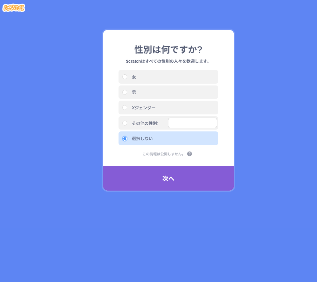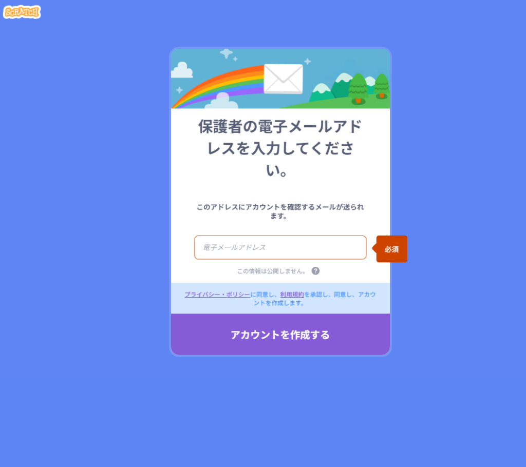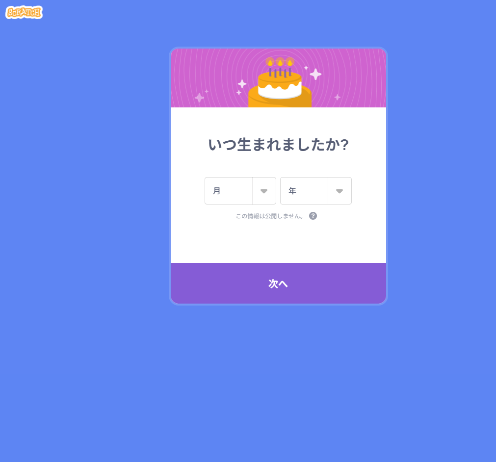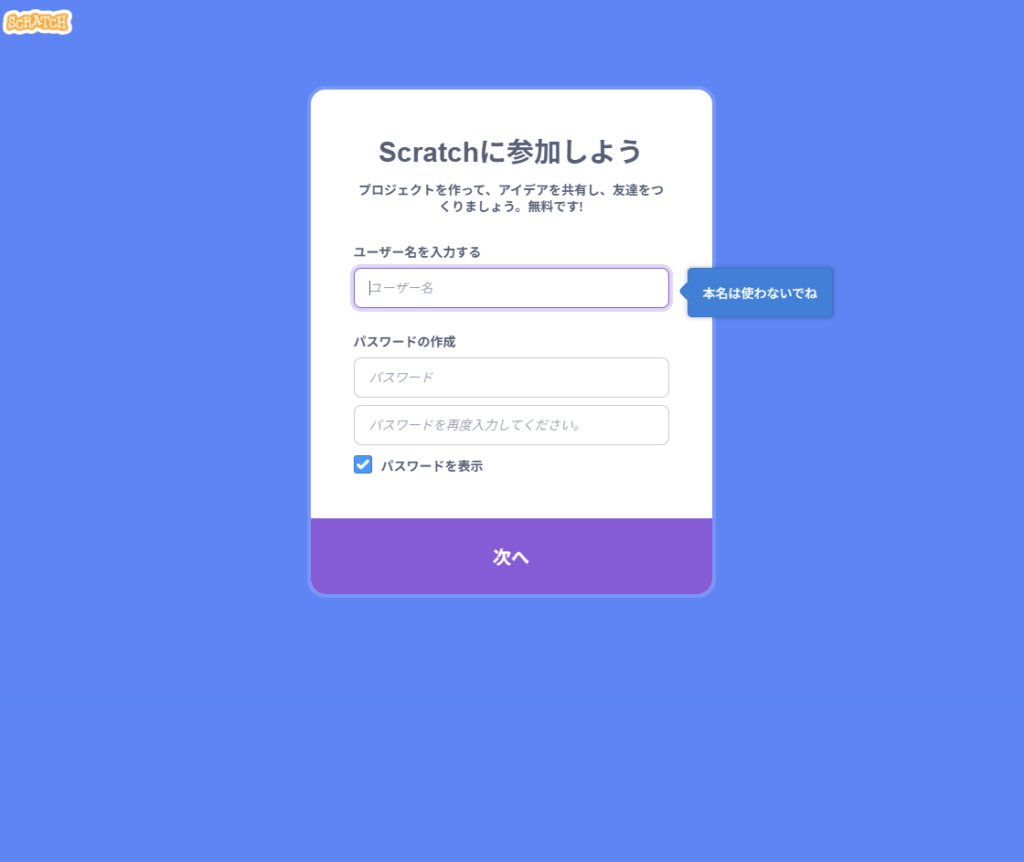 すると、このような画面になるのでユーザー名とパスワードをスクラッチの指示のとおりにやってください。